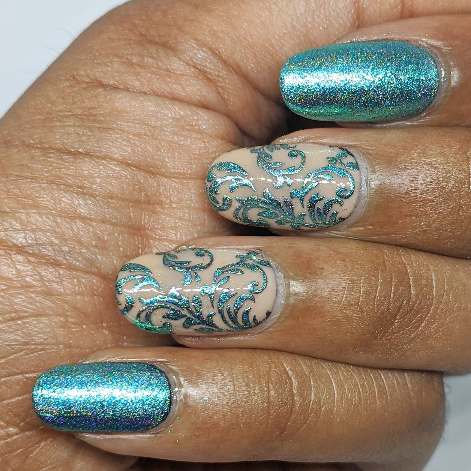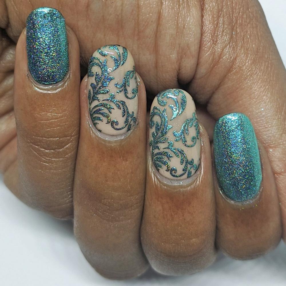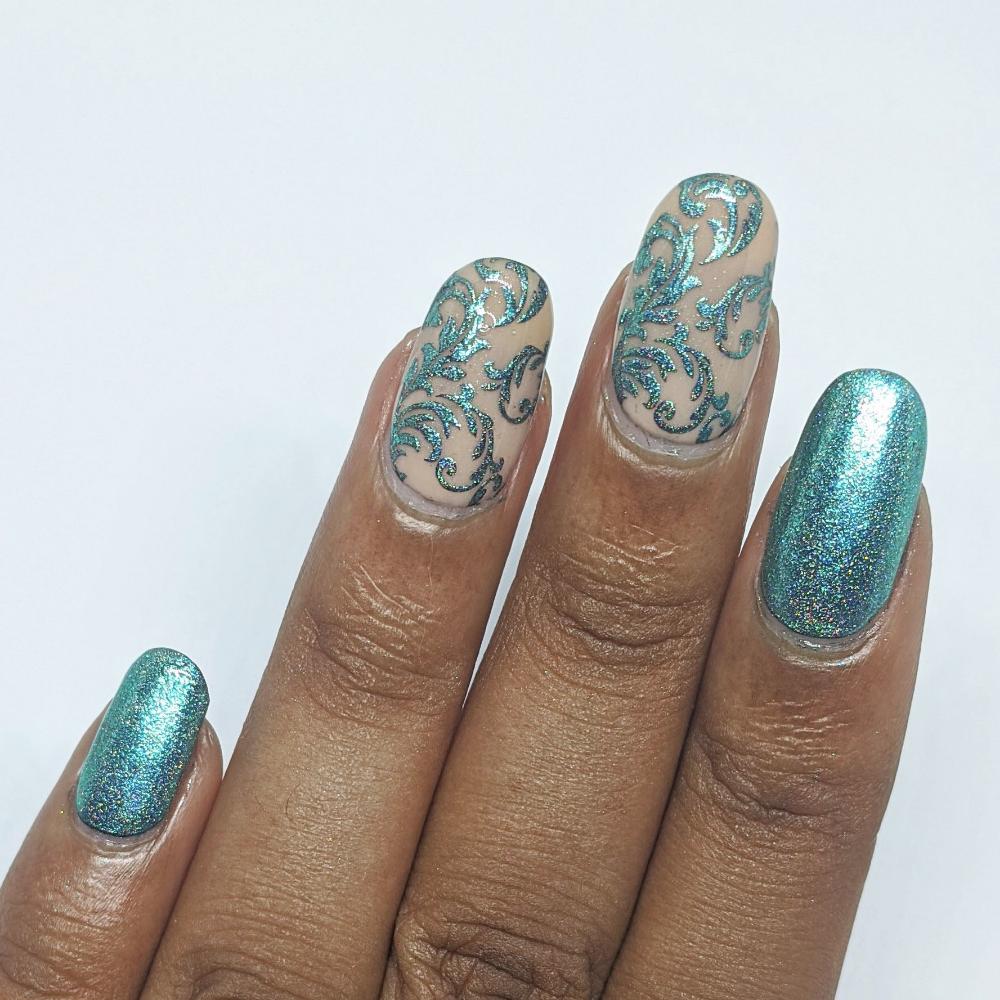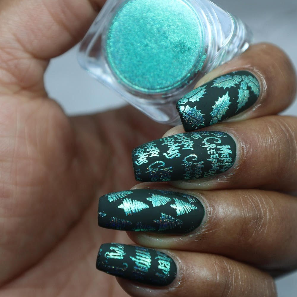 Create amazing nail art by using this green holo chrome pigment