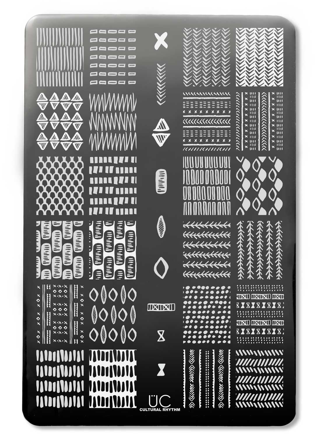 So luxe you may need a VIP pass. This chic plate is packed full of patterns that are perfect for every occasion! Use them as a subtle background, to add texture or let them standalone in bold and bright colors to make your mani POP! We were inspired from patterns around the world to make this plate - from Scandinavian simplicity to the bold designs of Africa - this plate is sure to become your next go-to stamping plate!