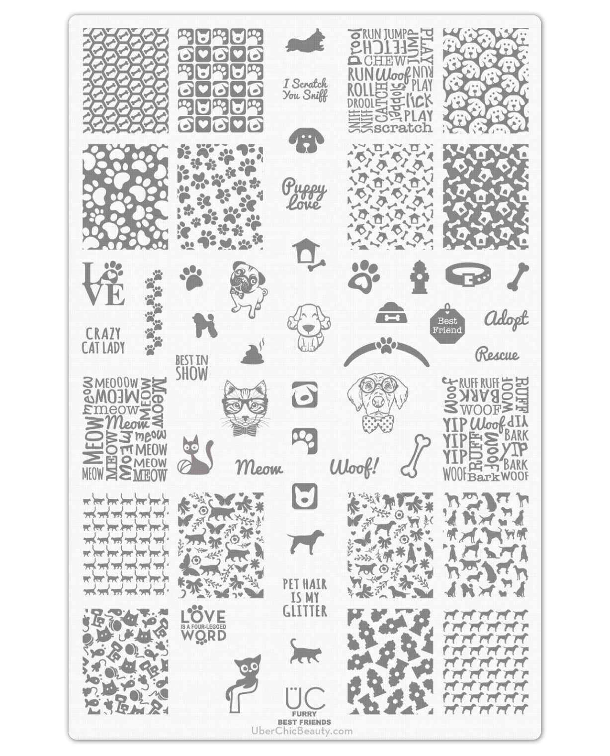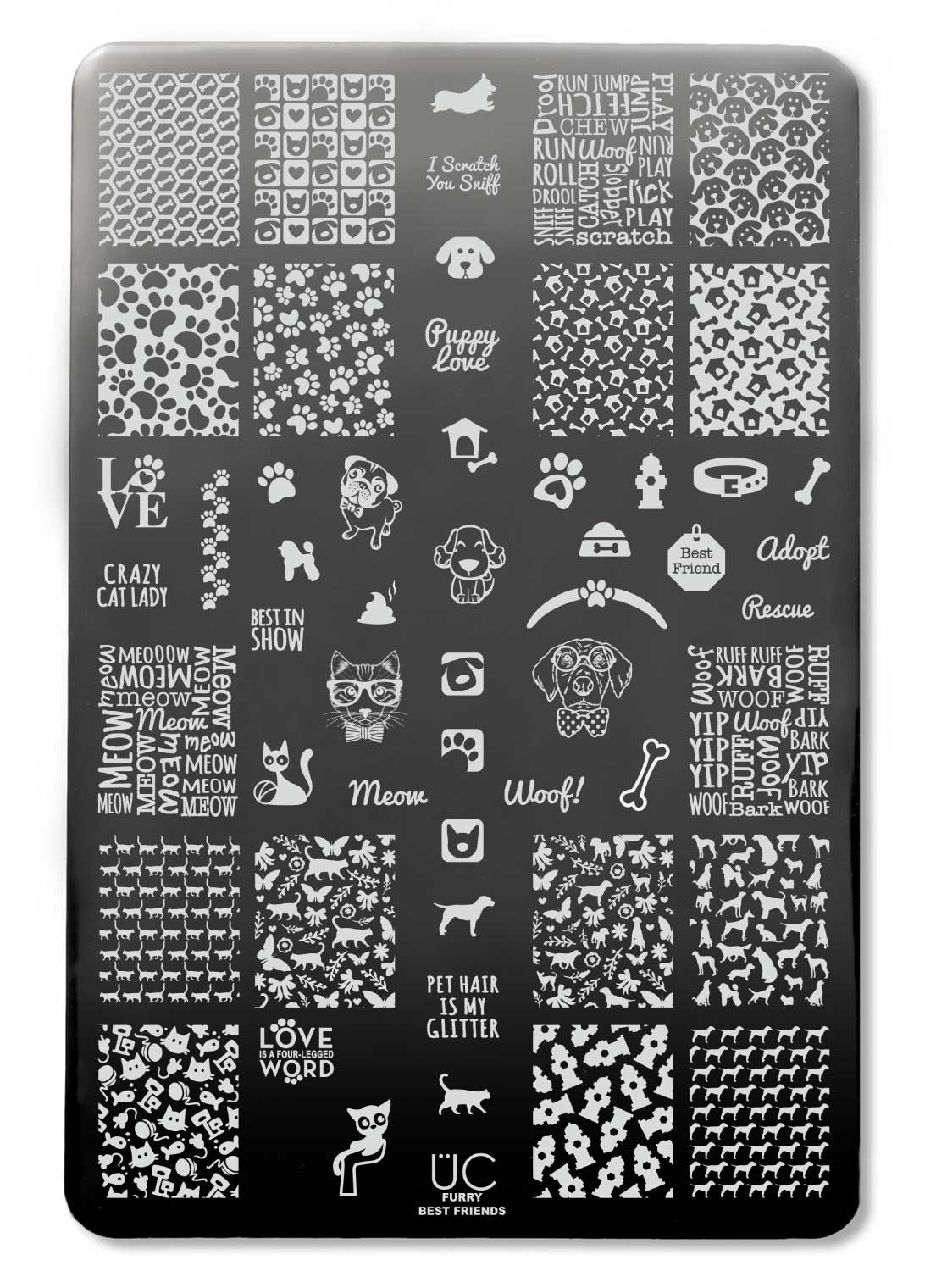Our Furry Best Friends Nail Stamp Plate makes it okay to proclaim that you are in fact the crazy cat lady everyone talks about, that you have conversations with four-legged roommates that rival any other talk you've ever had, that you, in all honesty, truly love your furry beastie.