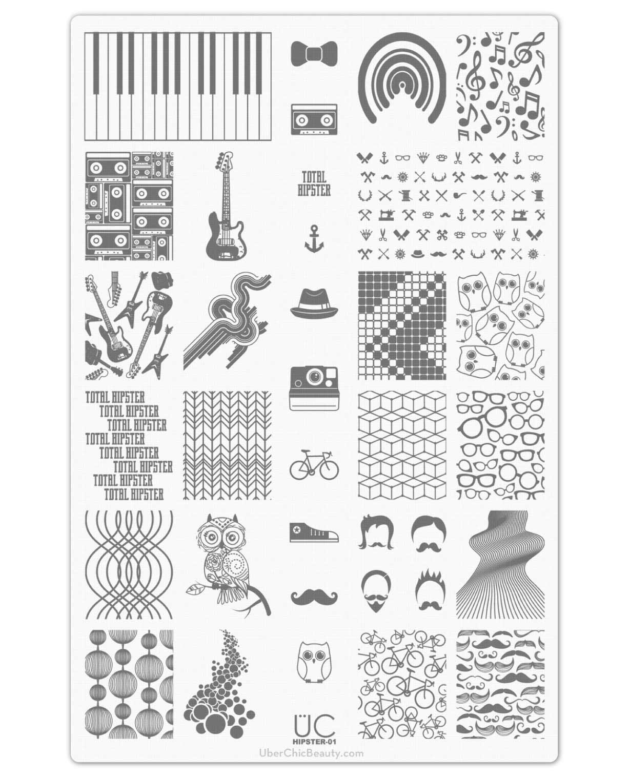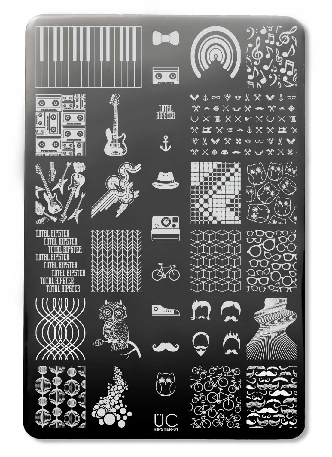 Our Hipster Nail Stamp Plate creates a feel unlike any other. From bicycles to spectacles, mustaches to music, owls to geometric prints - this plate has a little something for everyone.