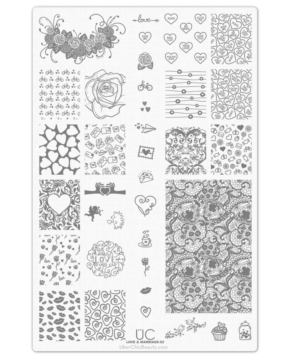 One word. Lace. Luscious, lovely, luxurious lace. And if that weren't reason enough to fall in love with this plate - we have a few more...! Hearts? Check! Candy hearts with cute little sayings? Check! Candy hearts with cute little sayings about nail polish obsessions?? DOUBLE check!! Plus, check out the fun love letters and artistic florals we have lining the edges...it's just too sweet not to love!