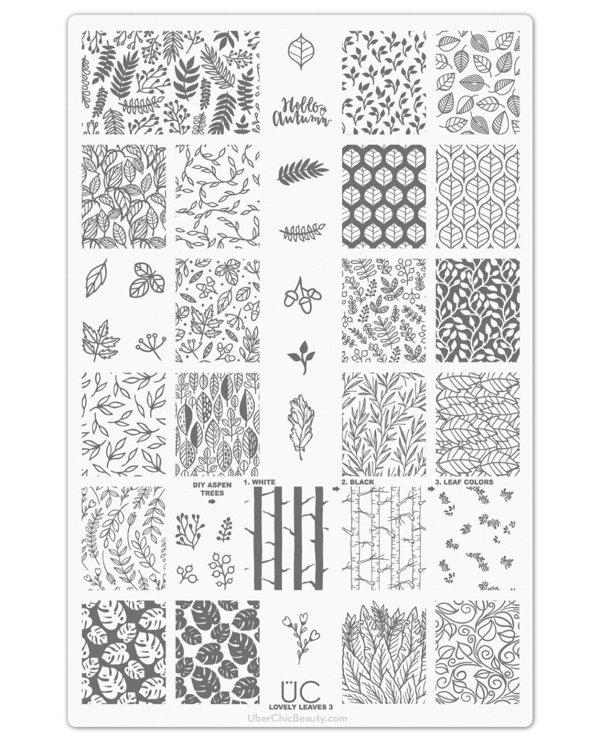 One of our most popular plates is back for round three! We’ve included a wide variety of leaves and even a DIY Aspen Tree stamp! Get you nails ready for sweater weather and the falling of those lovely leaves with our all new plate! From modern to whimsical to even some tropical - this plate has you covered for every leaf-filled season!