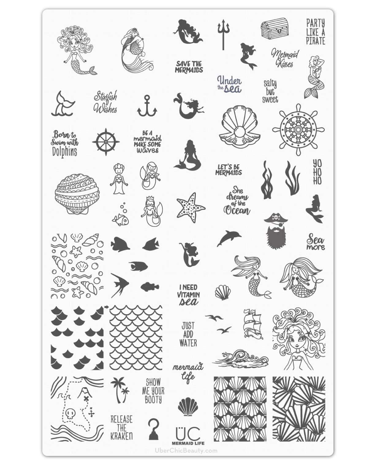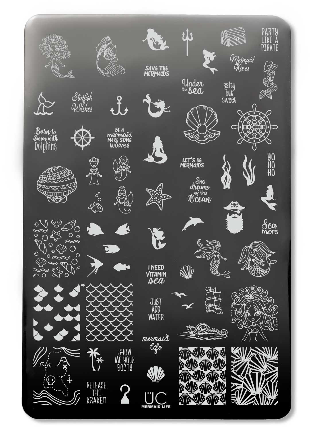 Another special request we've seen pop up time and time again: MERMAIDS!!!! Well we heard you loud and clear and we could not be more excited to release this very special plate to you! Make a splash and show off your fin-side! Also, we've added some Pirate nail art stamps to this plate as well to compliment your next adventurous mani! Mermaid Nail Art has never been more popular - so jump overboard, get your fins on and get ready for some mermaid loving manis!