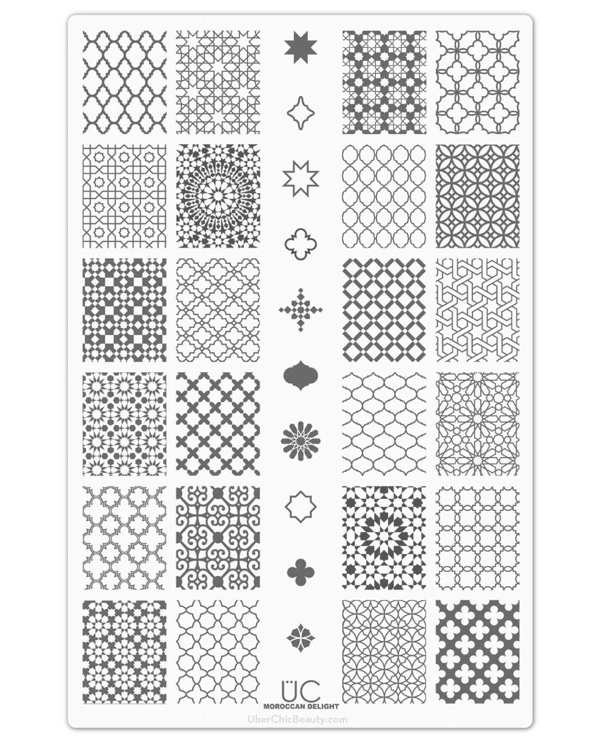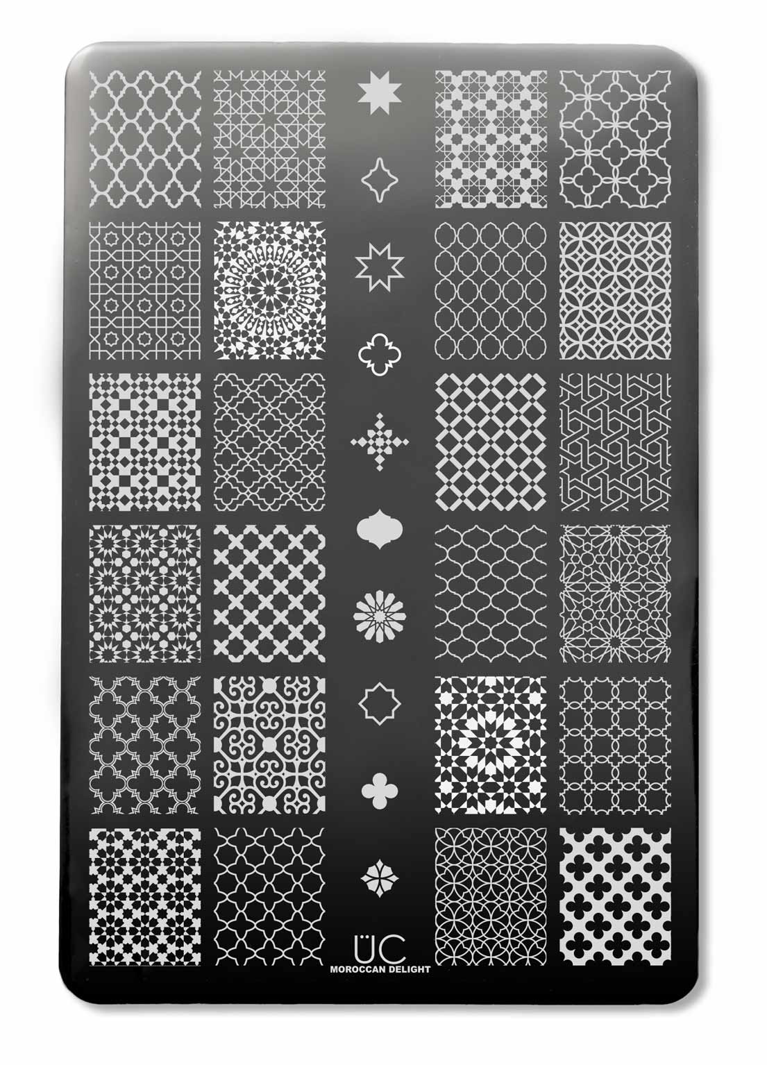 Our original Moroccan Beauty plate was such a hit we knew we needed to come out with a second! Say hello to Moroccan Delight! It's full of open and airy designs - plus a little more of the Moroccan elements mixed in too! Take a trip with our intricate patterns that mimic the luxe tiles from Moroccan architecture. We are certain you'll find more than a few go-to favorites in this big collection of designs!