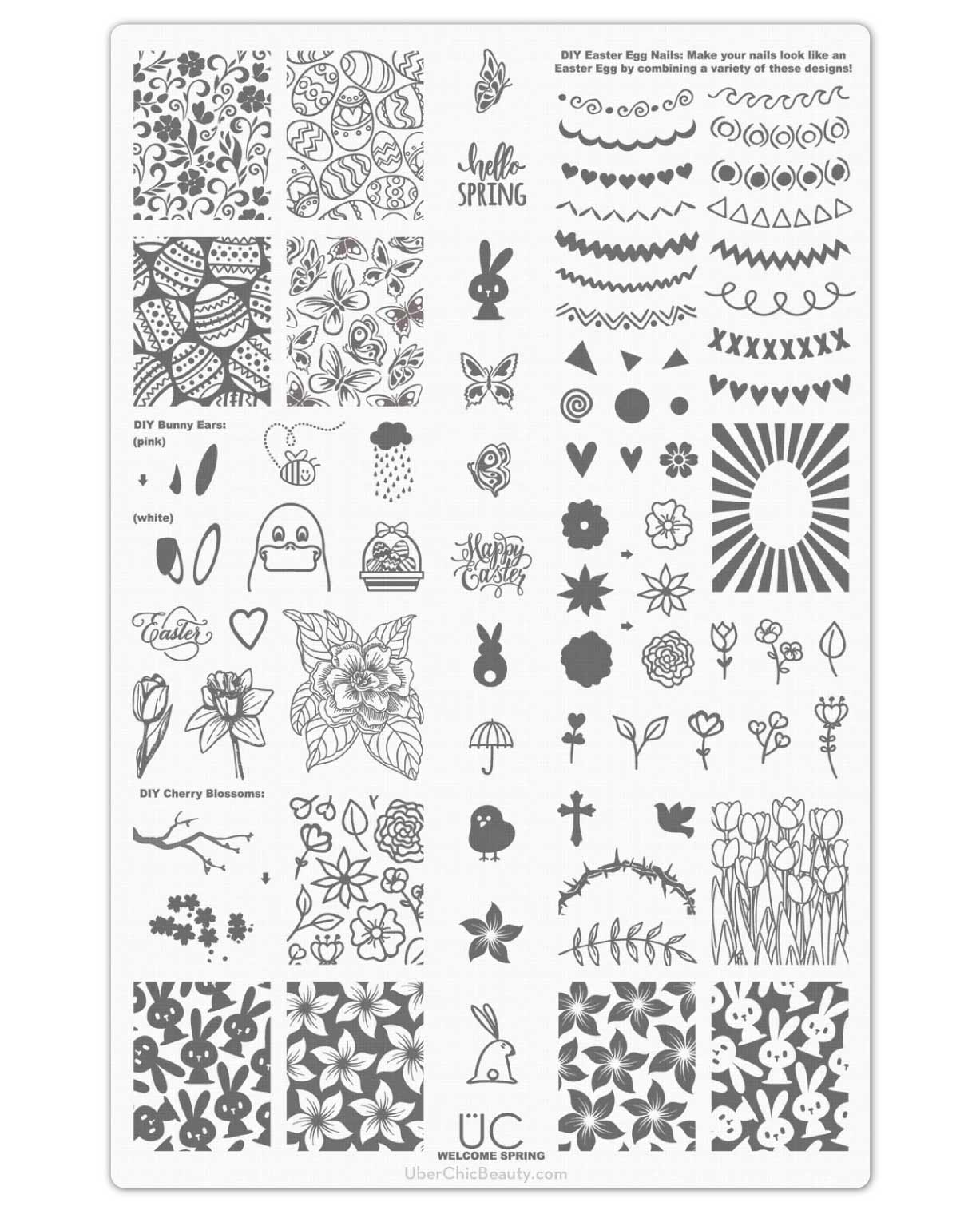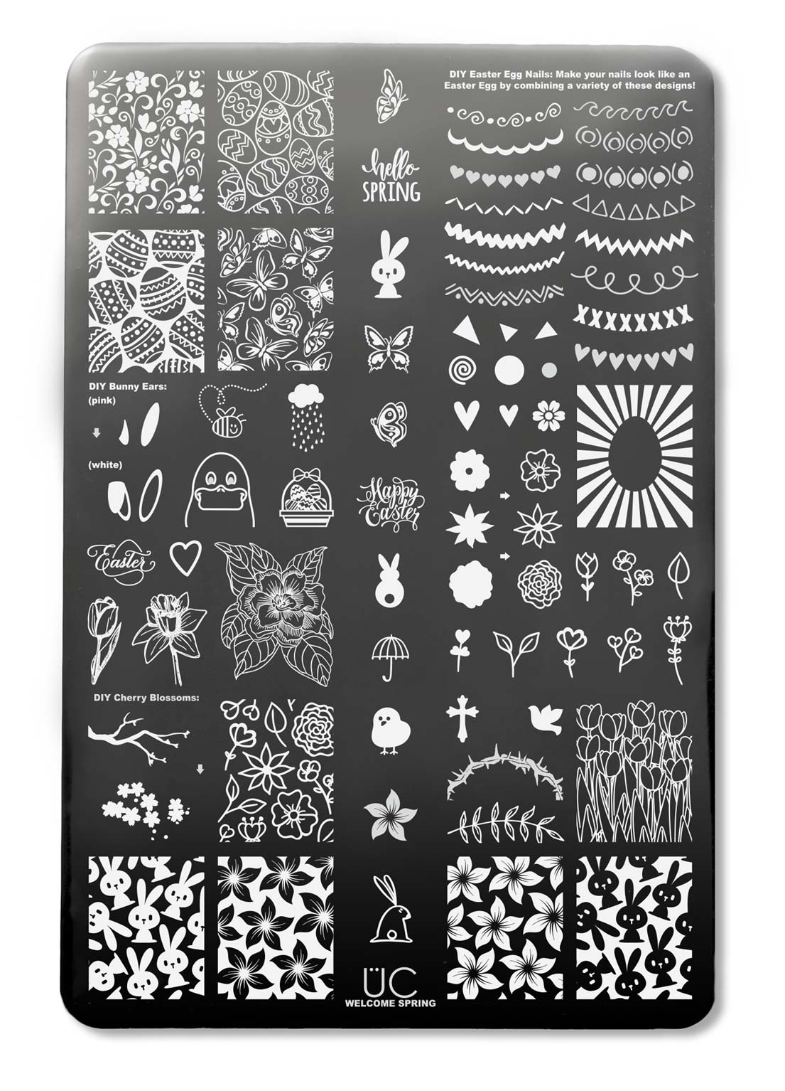 Celebrate Spring and Easter in style with our all new Welcome Spring plate! It's full of cute bunnies, Tulips, a DIY layered Cherry Blossom design and even layers to make your nails into adorable Easter Eggs! Wanting to find the most amazing spring nail art? How about turning your nails into Easter Egg Nails? Look no further than this nail stamping plate.