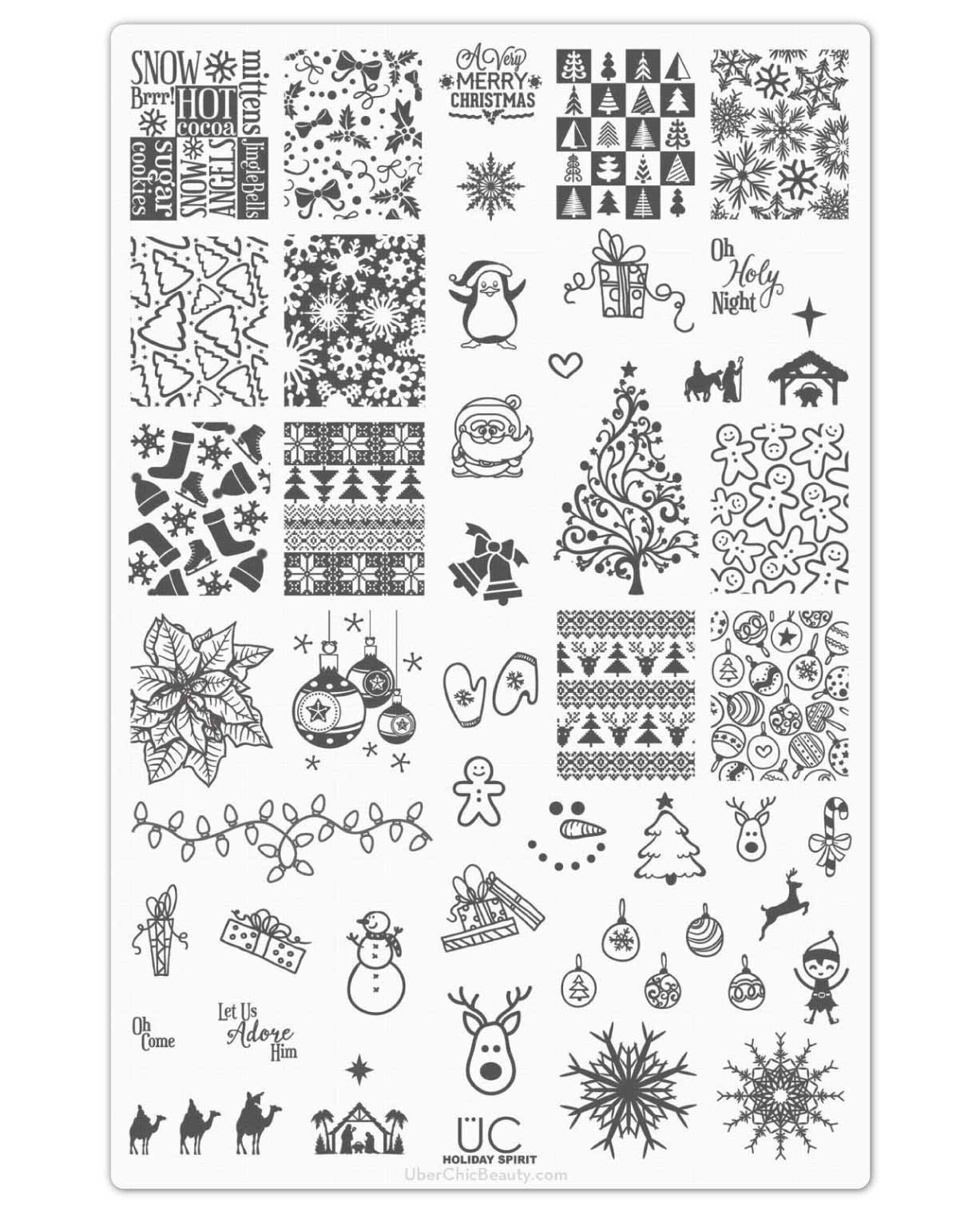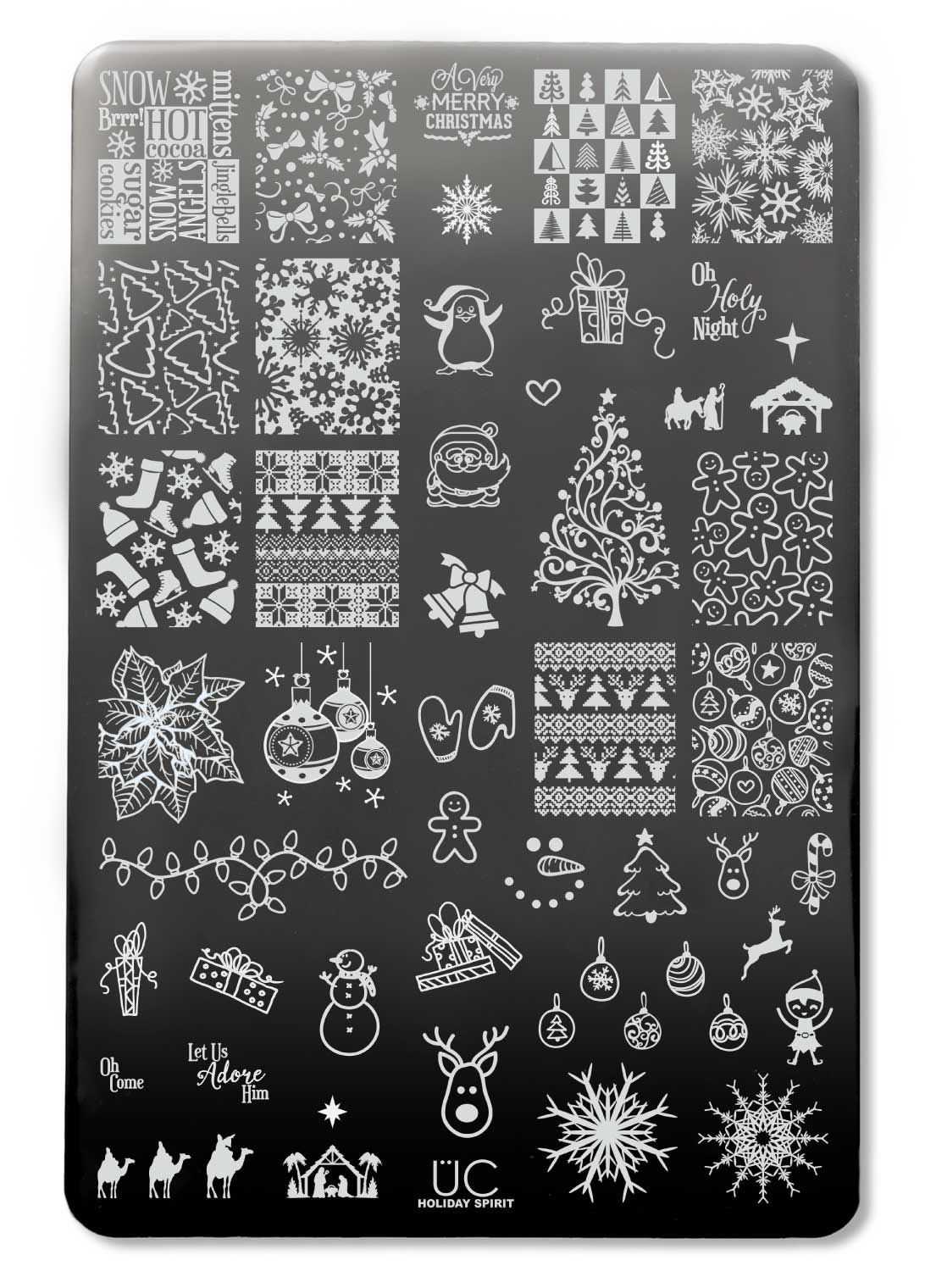 Bring on the ho ho ho-lidays! We've pulled out all the stops when we created this cheery nail stamp plate. Celebrate the Christmas season in style and invite Rudolph and gang to hang out on your nails! Our Christmas nail art plate is perfect for getting in the sweater-weather and hot cocoa mood (because that IS a thing) and make every mani a festive one. Find inspirational Christmas-themed nail art images galore on this plate and use it again year after year. So get some snowflakes and your favorite reindeer - and say "Merry Christmas" on your nails. You won't believe the amount of holiday nail art ideas you can create with just this plate all by itself!