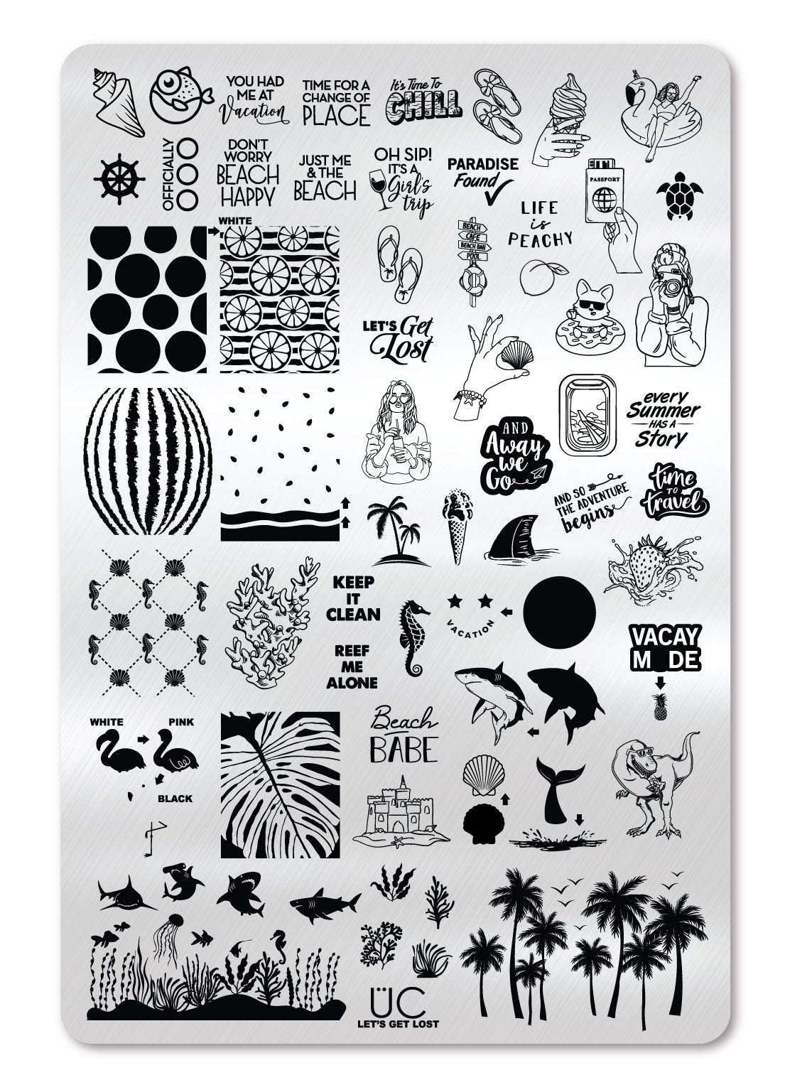 Presenting the perfect way to get beach-ready nail art in a snap! Whether you're ready to float away on a lazy river or find your own kind of paradise - our all-new vacation-ready plate has got you covered. Mark yourself as officially O.O.O. and elevate your manicure with the perfect beaching nail art.