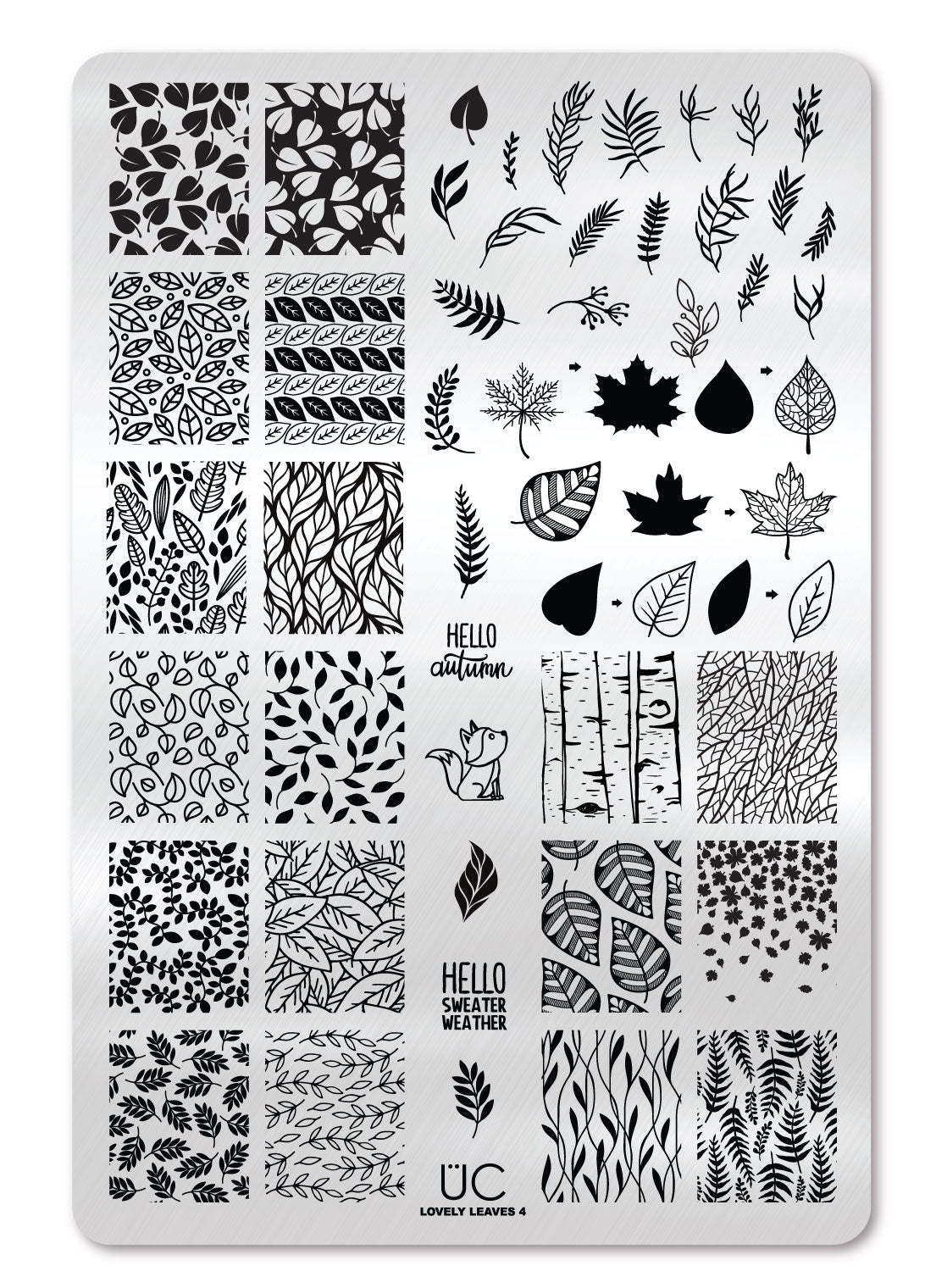 We started the Leaves plates a few years back and have watched the trend grow and grow. Now we've crafted the perfect addition to our Lovely Leaves family with our 4th plate! This one even features a little fox and some fun sayings like "Hello Autumn" and "Hello Sweater Weather". Get cozy, seasonal nails just in time for fall with our NEW plate that even includes some layerable leaves too!
