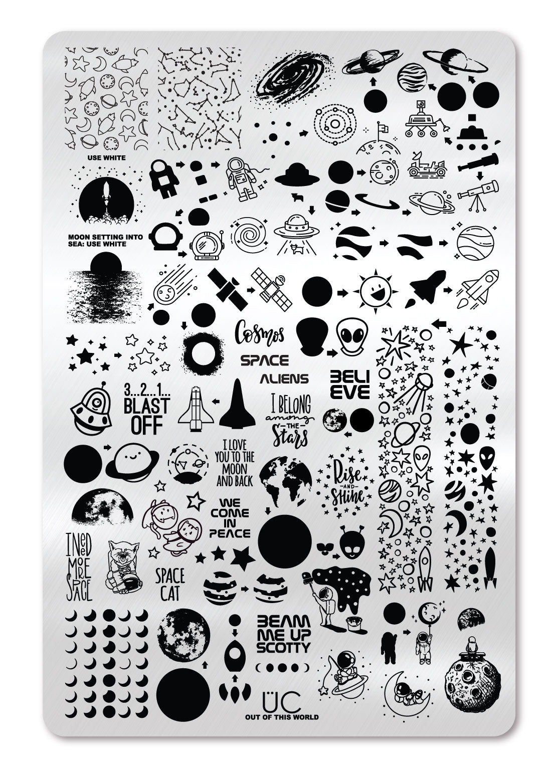 We needed some SPACE! Outer space that is… Our most out of this world plate yet! We’ve got space cats, aliens, planets, stars, moon phases, astronauts, rockets, Earth, cosmos, moons and so much more! Take a trip to the moon and back with our all-new single! Get space-age nail art in a snap! Ready? Beam Me Up, Scotty!