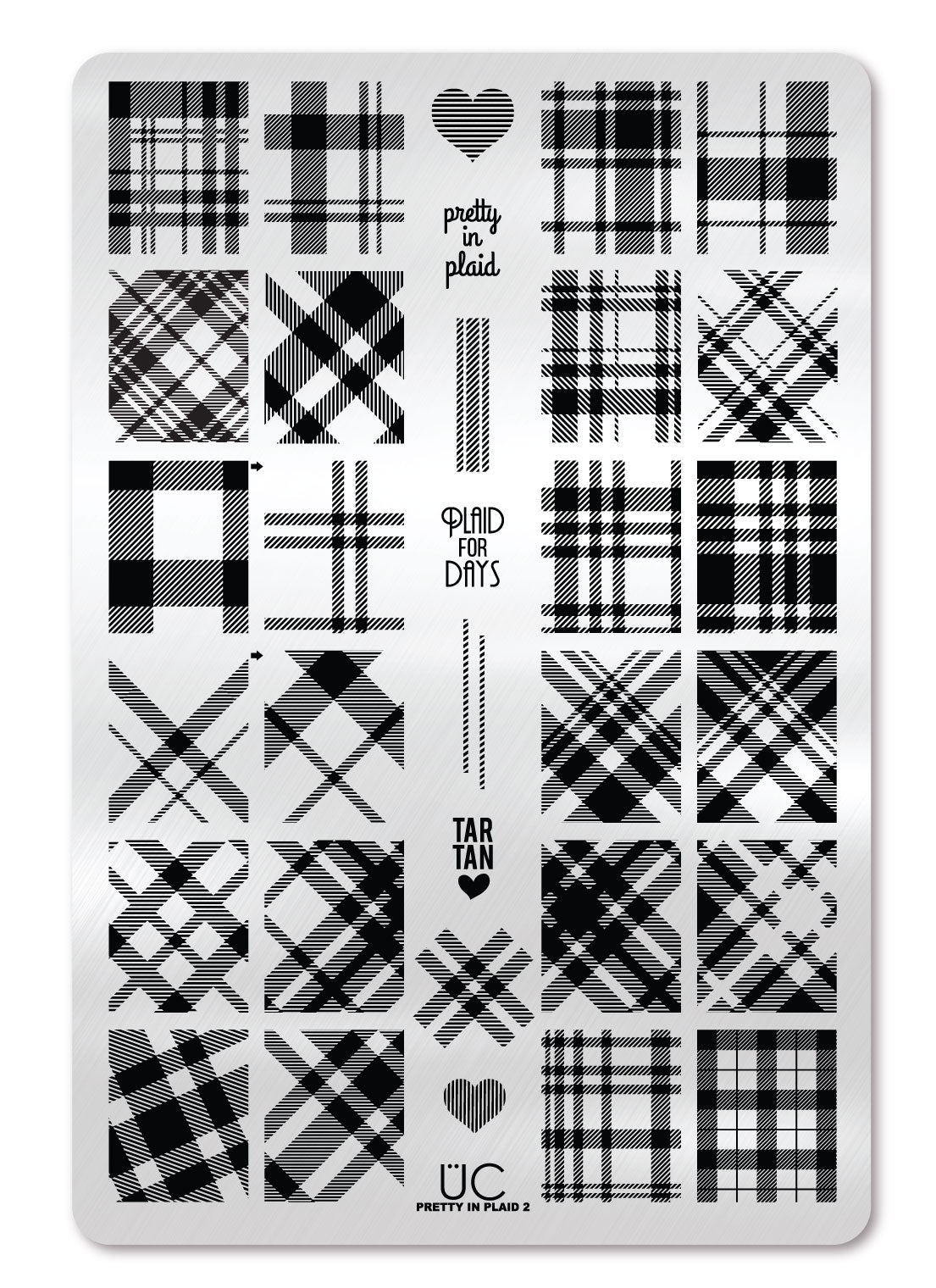 We took everything you loved about our first Pretty in Plaid plate and perfected it even further! Introducing our all new luxe Plaid nail stamping plate featuring designs that will keep your fingertips sophisticated and on point! Layers? Yes – it's got those too! Look for the little arrow for coordinating full designs or use our strips down the middle to layer over any of the full designs!
