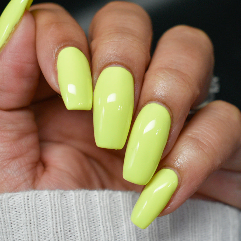I was looking to replace my old neon yellow polish and spent a long time looking for a match before stumbling on HTBP. It’s a perfect match and I couldn’t be happier. Superior quality, dries quickly and I’ve not experienced any chips or peeling at all. So happy with my purchases, thank you!