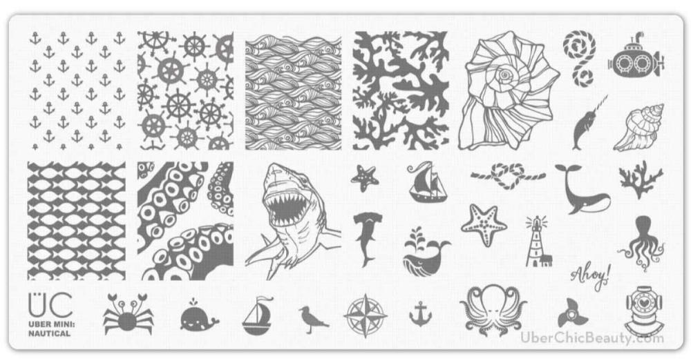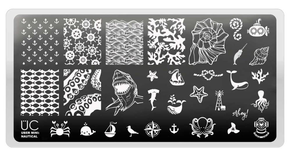 High seas and starfish, coral and seashells, narwhals and sharks, goldfish and anchors, octopus and tentacles, lighthouses and sailboats...what more could you want on a nautical themed nail stamp plate? So ship ahoy mateys – we hope you enjoy our little bit of the sea!